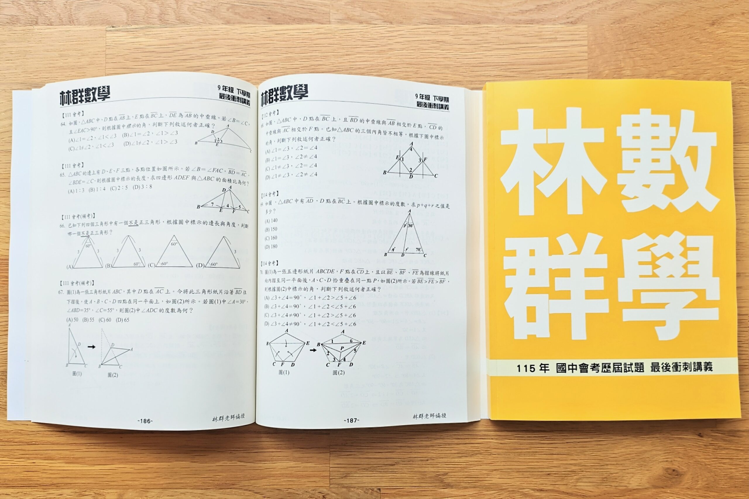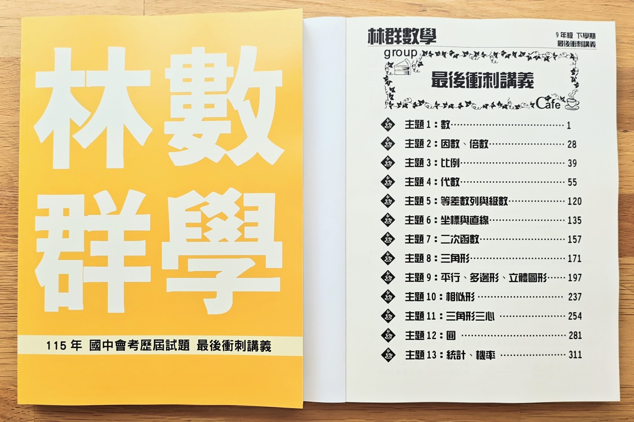 115年 國中會考歷屆試題 最後衝刺講義,全書分成13個主題共341頁,包含了所有年份的歷屆基測會考試題。講義可以由任一主題開始練習,例如圓與相似形的觀念比較不熟,就可以從這些單元先做起。每完成一部份對完答案後,若有錯誤或猜對的試題,務必打星星重點標記,並且詢問師長搞懂正確的解析方法,考前再反覆練習這些題目,如此必能有巨大的進步。